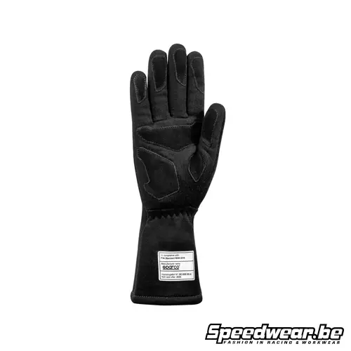 Sparco Autosporthandschoen LAND BLACK met FIA 8856-2018 homologatie. Brandwerende racehandschoenen met suède grip en comfortabele pasvorm.