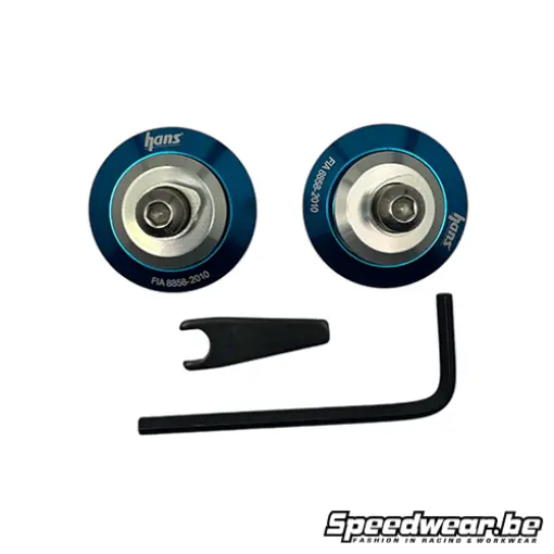 De Schuberth FHR Clips in blauwe kleur zijn speciaal ontworpen voor gebruik met Schuberth-helmen en FHR (Frontal Head Restraint)-systemen. Deze clips zorgen voor een veilige en betrouwbare bevestiging van het FHR-systeem, essentieel voor de veiligheid en stabiliteit van coureurs tijdens races en andere motorsportactiviteiten.